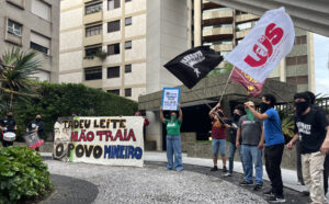 Na manhã desta terça (04/11), militantes do movimento Afronte!, do Levante Popular da Juventude (LPJ) e da União da Juventude Socialista (UJS) foram à porta da casa onde mora o presidente da Assembleia Legislativa de Minas Gerais (ALMG), Luiz Tadeu Martins Leite (Tadeuzinho) do MDB para denunciar o avanço da PEC 24/2023, conhecida como a PEC do Cala Boca. A PEC do Cala Boca propõe a retirada da Constituição do Estado de Minas Gerais da necessidade de um referendo popular para autorização da desestatização das estatais que ofertam serviços de saneamento básico (Copasa e COPANOR), energia elétrica (Cemig) e fornecimento de gás (Gasmig).