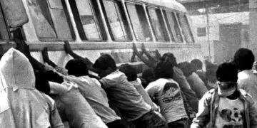 Populares revoltados no Terminal de Ônibus de Guarena, durante o Caracaço. Via Opera Mundi.
